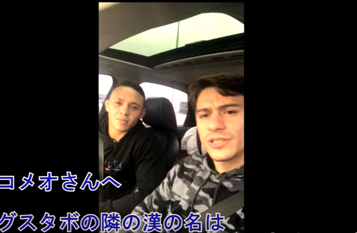 グスタボの隣りで参戦アピールするネイト(「ルイス・グスタボ JAPANチャンネル」より)