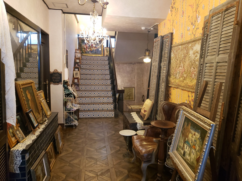 建物はそのままだが、1階玄関を入るとエントランスから写真スタジオの内装になっている。上にはシャンデリア