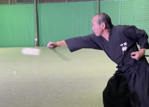 日本刀で160キロの豪速球を真っ二つに!(日本拳法空手道勇和会YouTubeより)