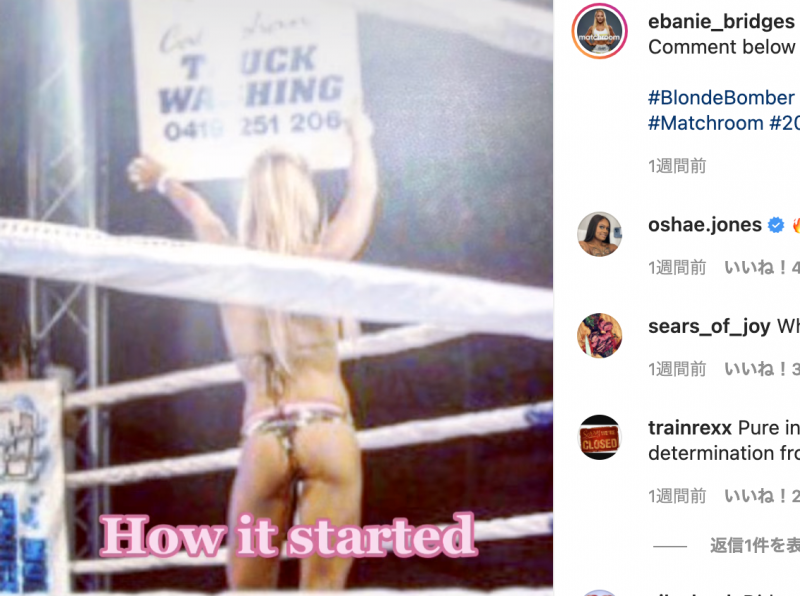 際どいTバックビキニのリングガール時代のブリッジス(@ebanie_bridgesより)