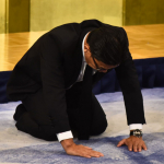 神妙な面持ちで正座する榊原CEO