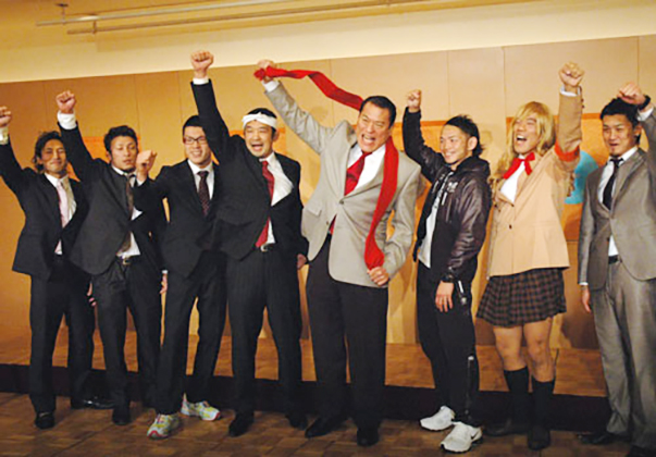 Dynamite!プロデューサーに就任しダーをする猪木さん。宇野薫や青木真也他の姿も見える
