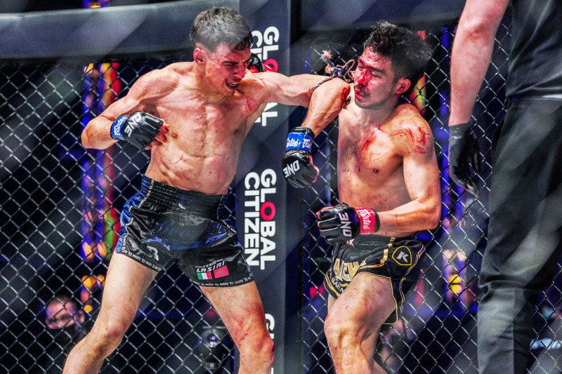プラジャンチャイにTKO勝利したラシリ(左)©️ONE