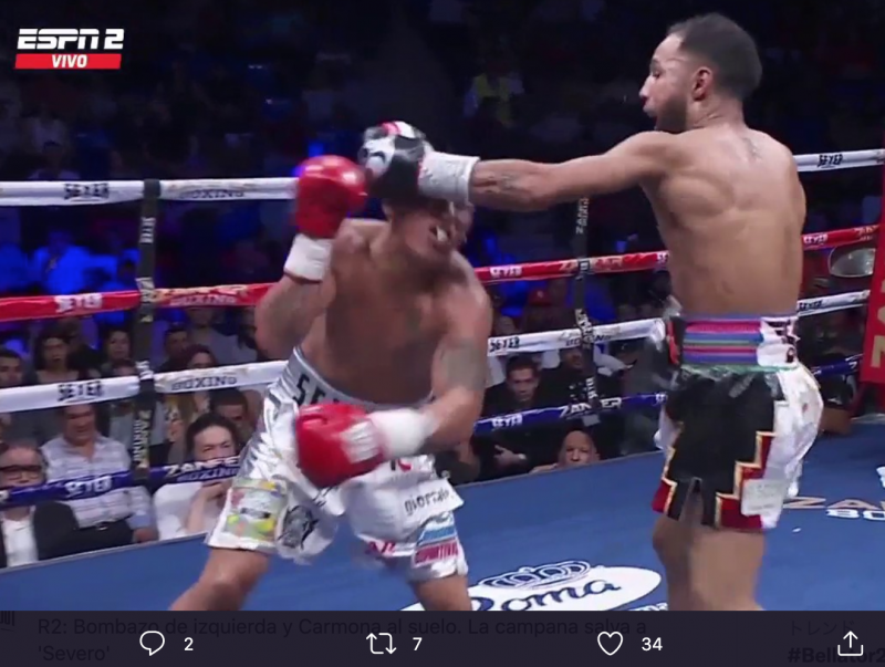 フィニッシュの左フックがテンプルにヒット!(ESPN KNOCKOUT TWITTERヨリ)