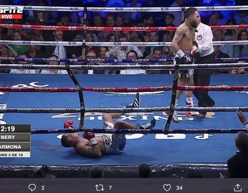 ダウンするカルモラ(ESPN KNOCKOUT TWITTERヨリ)
