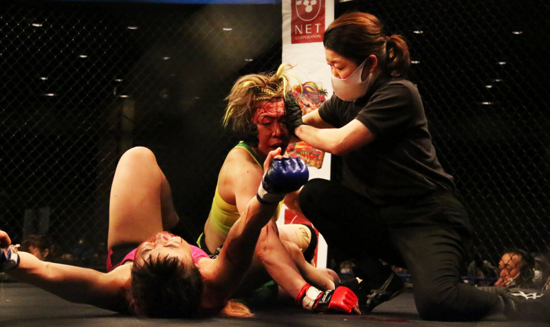 今年3月の防衛戦で大流血TKO負けを喫した藤野。復活なるか。