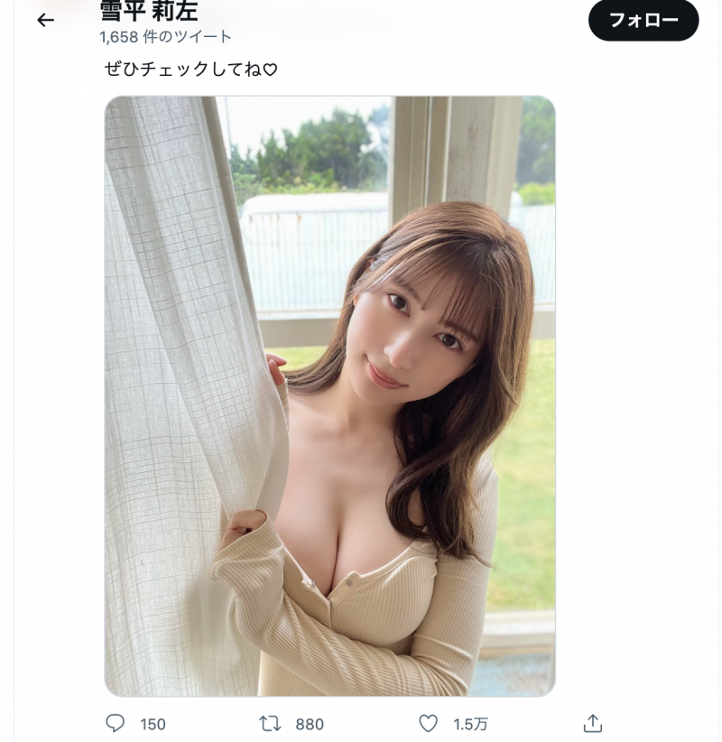 今回のグラビアを告知する雪平、Twitterでは1万5千のいいねがつく