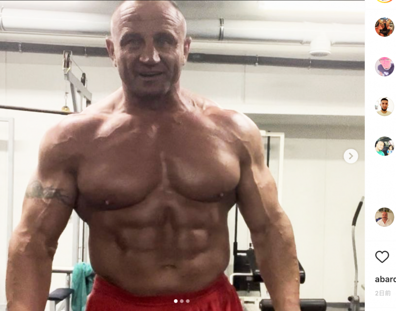 これが45歳の肉体か!?4日、練習後の肉体@pudzianofficialより