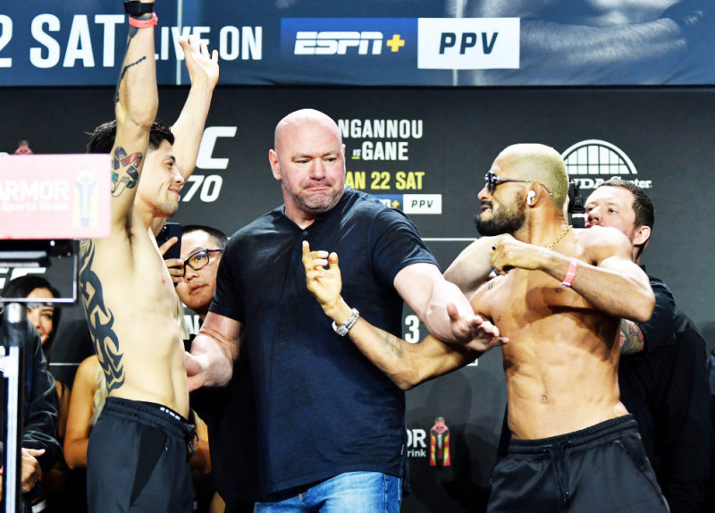 バチバチのフェイスオフをするモレノ(左)とフィゲイレード(右)©️UFC