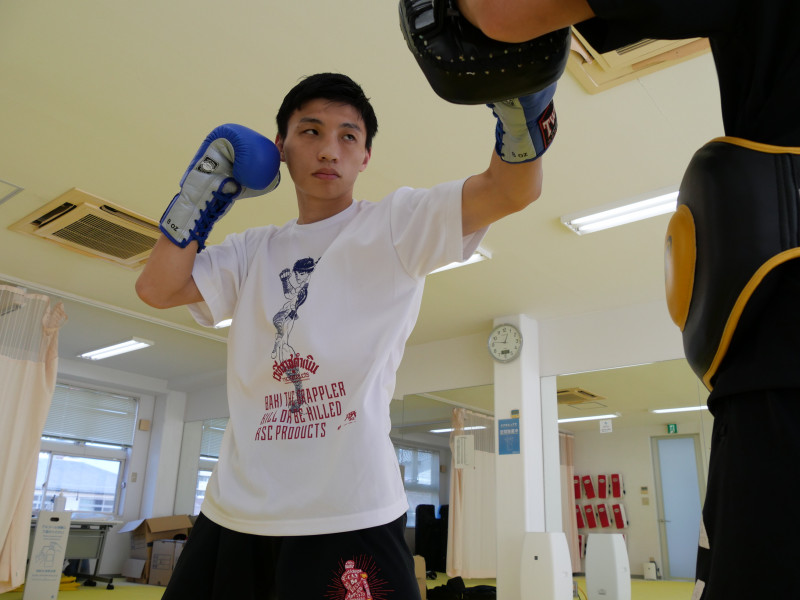 ミットを打つ大﨑一貴