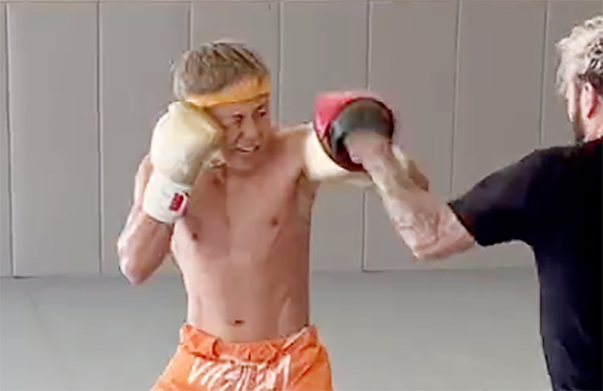 武尊が11.6復活へ向け、強烈なミット打ちを公開した(武尊Twitteより)