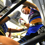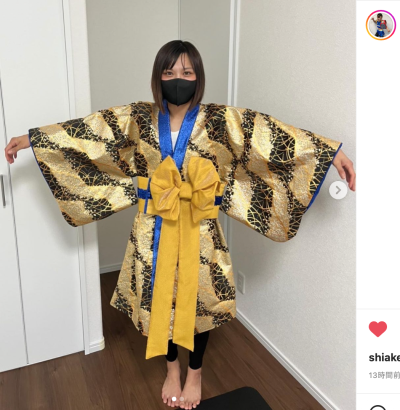 新しい黄金の和風ガウンを披露するMISAKI(@misaki_shootboxingより)