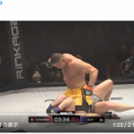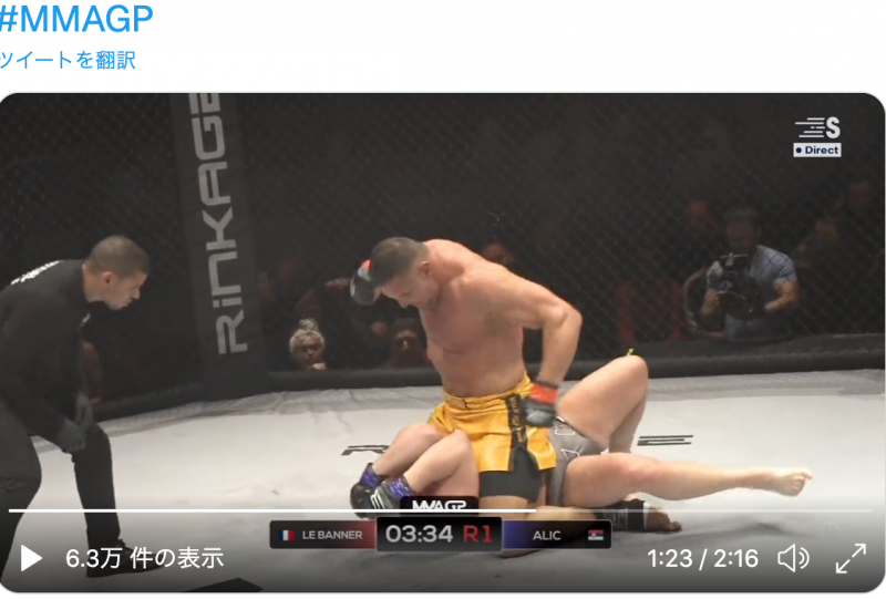 馬乗りからパウンドを落とすバンナ@Grabaka_Hitmanより