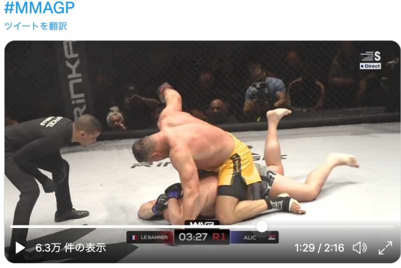 馬乗りからパウンドを落とすバンナ@Grabaka_Hitmanより