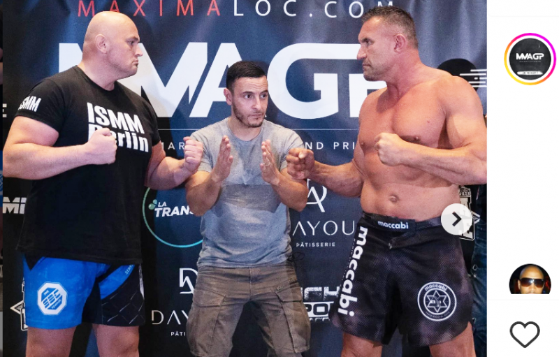 前日フェイスオフで対戦相手と睨み合いをするバンナ(右)@mmagrandprixより