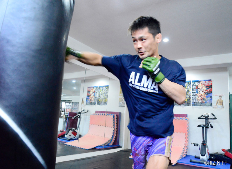 サンドバッグを打つ牛久絢太郎