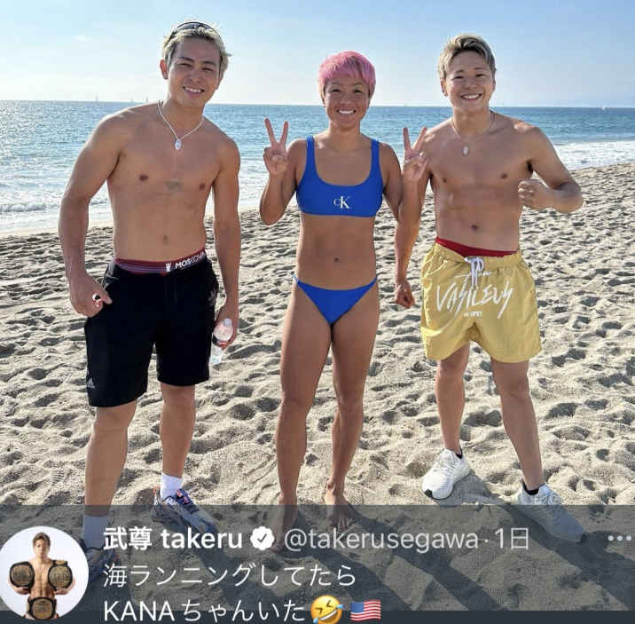 大岩龍矢(左)とKANA、武尊で西海岸でのスリーショット @takerusegawa より