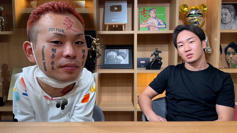 朝倉未来は、顔面に“朝倉未来”と“朝倉海”のタトゥーが入った男と対談した(『朝倉未来 チャンネル』サムネイルより)