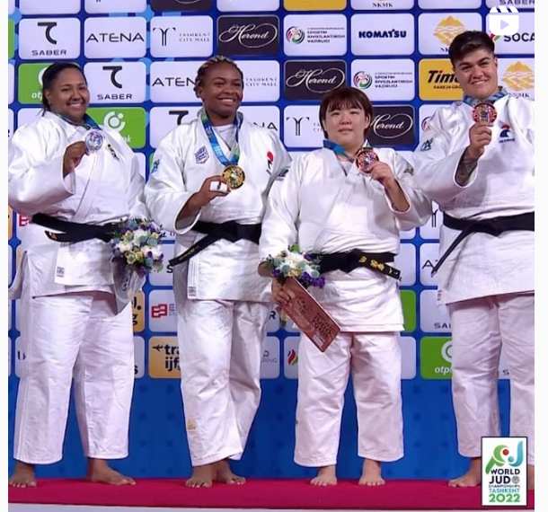 女子78キロ超級は昨年準優勝の冨田若春(右から2人目)が銅メダルを獲得