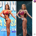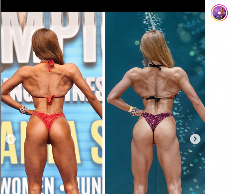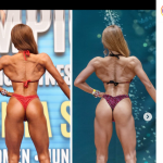 1年前(左)と今月1日の安井(右)。肩の大きさはもちろん、ヒップの盛り上がり、太もものスジのキレなどの進化がわかる(安井友梨尹sぬたより)