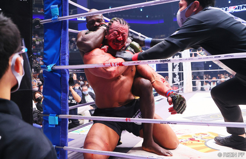 激闘の末、血まみれの北村がたまらずタップ!(21年11月)