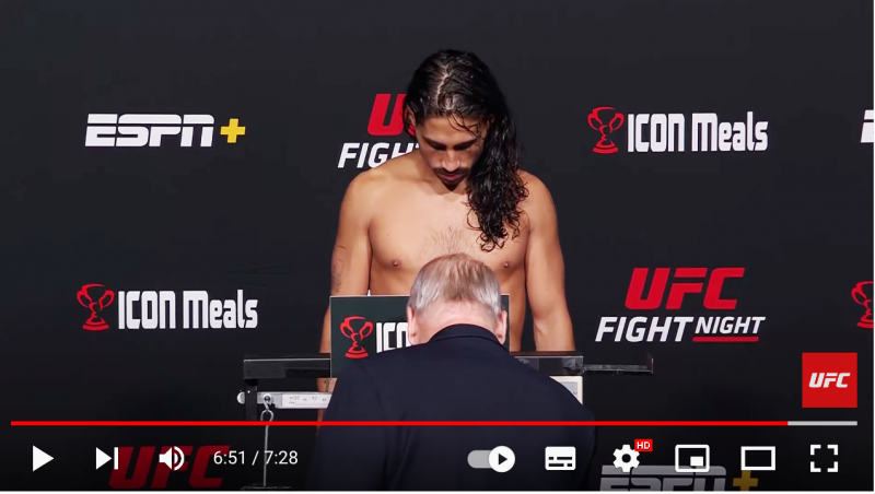 計量に失敗した対戦相手のヴァルガス(UFC公式YouTubeより)