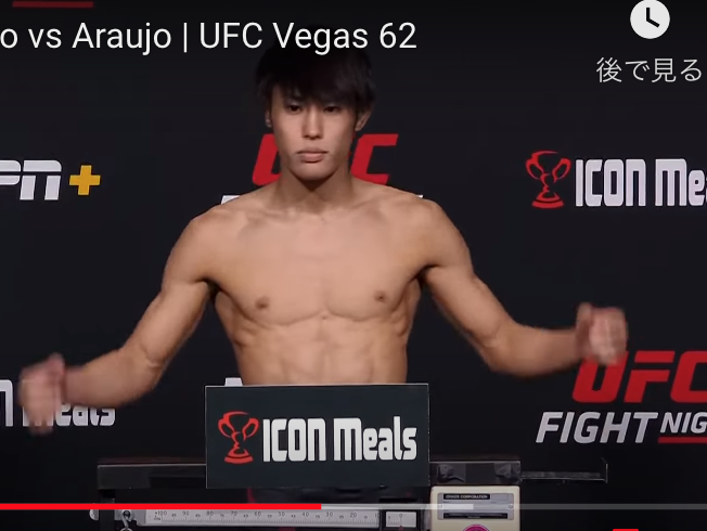平良がバキバキのマッスルポーズ!UFC公式YouTubeより)