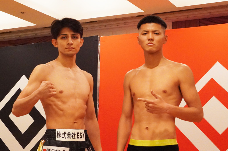 鈴木宙樹(左)と西岡蓮太(右)が計量パス
