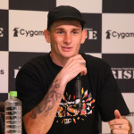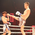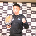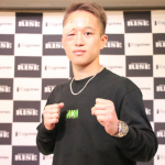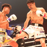 ペットルークオン(左)にパンチをヒットさせる宮﨑(右)