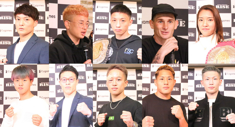 一夜明け会見に出席した(上段左から)志朗、チャンヒョン・リー、大﨑一貴、チャド・コリンズ、宮﨑小雪、(下段左から)那須川龍心、小川翔、翼、大雅、安本晴翔