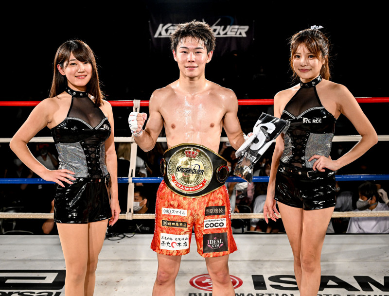 青山あいり(右)がKROSS OVERで黒衣装でラウンドガールを務めた