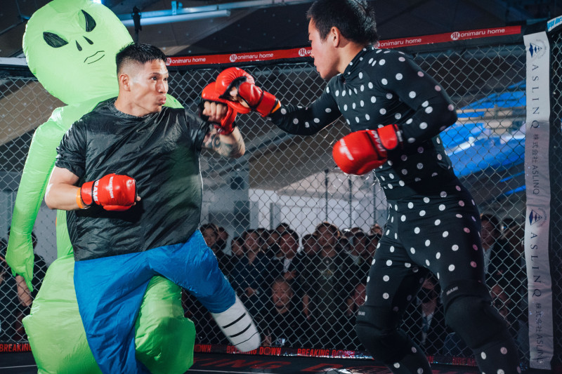 たいてぃん(右)はパンチを当てにいった