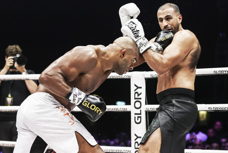 バダ・ハリ(右)に強打を浴びせるアリスター(左)©️GLORY