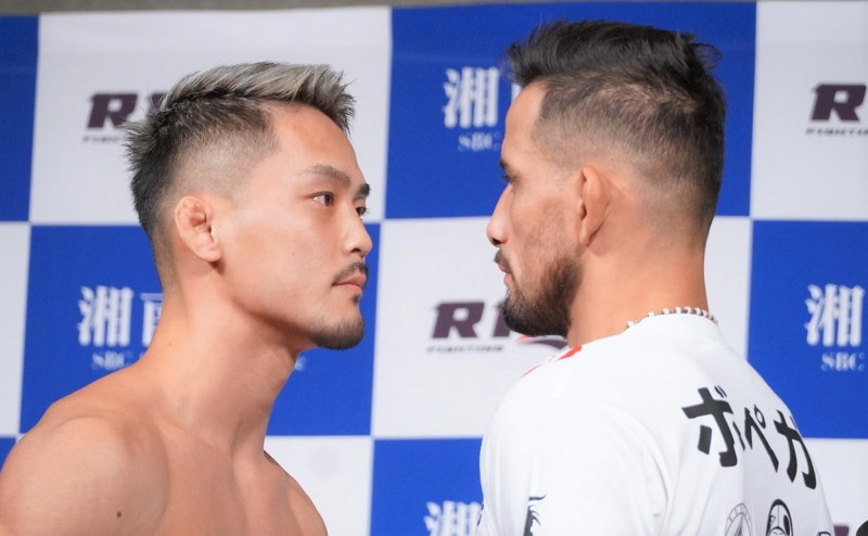 明日のタイトルマッチに向けて牛久(左)とクレベル(右)がフェイスオフで睨み合った
