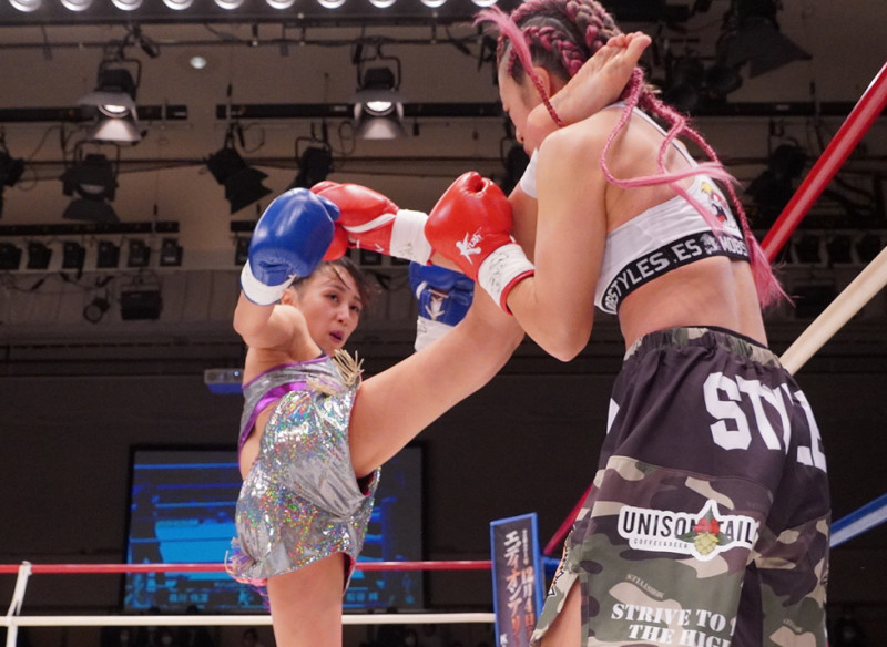強烈な上段回し蹴りが入る