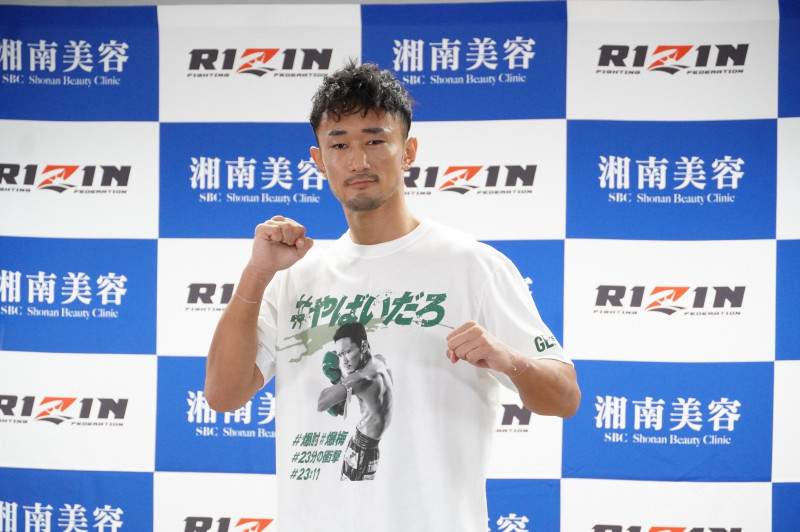 梅野源治が“やばいだろ”Tシャツで会見出席