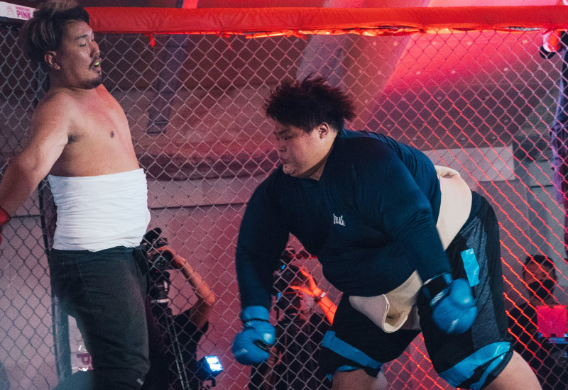 元力士のチャン・エドモンド(右)がスパーリングで圧倒
