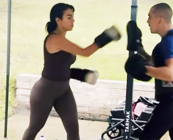 キックボクシングのミット打ち練習をするジョージナさん@linc_mma_strongより