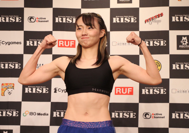 村上悠佳が計量パスでマッスルポーズ
