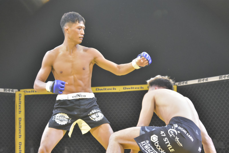 雑賀のパンチがクリーンヒット、相手が崩れ落ちる瞬間