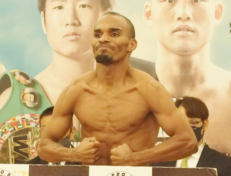 ゴンサレスが計量パスでムキムキのマッスルポーズ