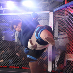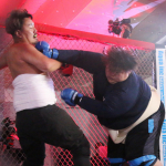 オーディション内の試合でも元力士のチャン・エドモンド(右)が圧倒