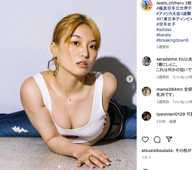 いわちのセクシーポーズ(いわちのインスタ@iwato_chiharuより)