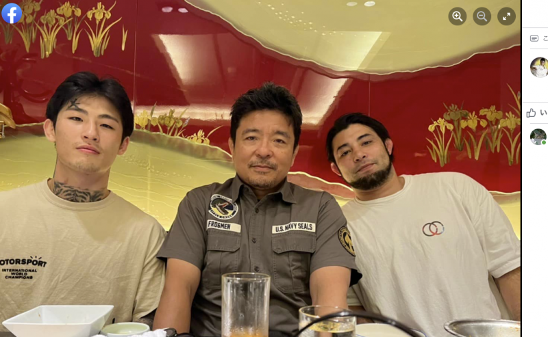 左から平本、岩崎宗師、長谷川賢=剛毅會空手フェイスブックより