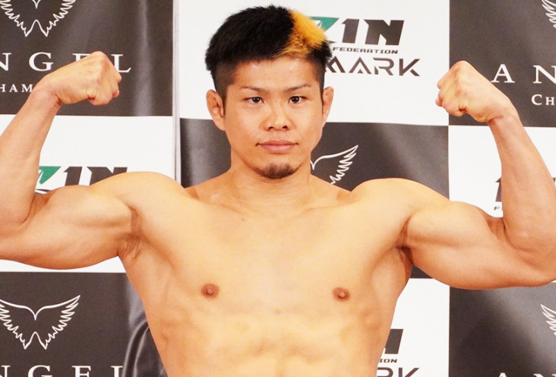 “怪物くん”こと、鈴木博昭がマッスルポーズで計量パス