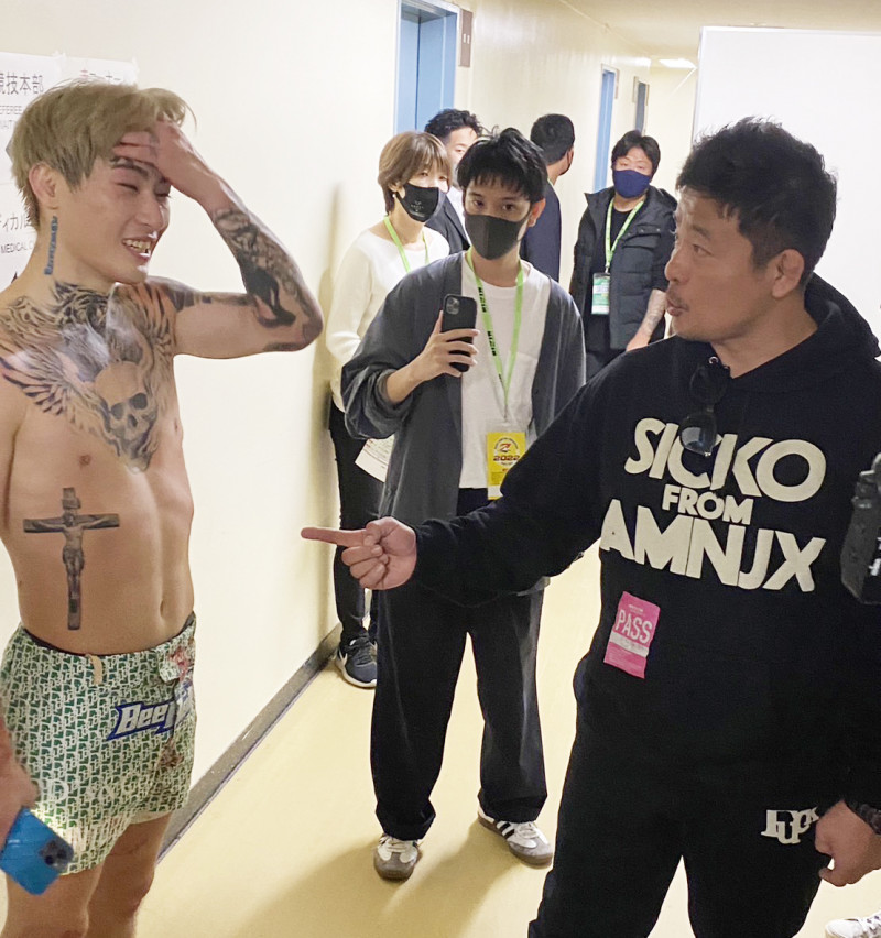 舞台裏で平本に厳しい指摘をする岩崎氏▶︎次は大流血の弥益