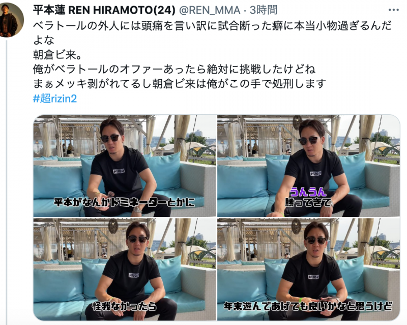 朝倉を処刑する、と平本(平本蓮Twitterより)
