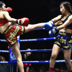 10月のタイ遠征試合で強豪マングーペット(左)の右ミドルをもらうKAREN(右)