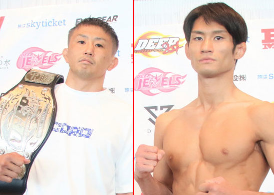 CORO(左)は初防衛で石司(右)とのリマッチを迎える。ともに計量パスした