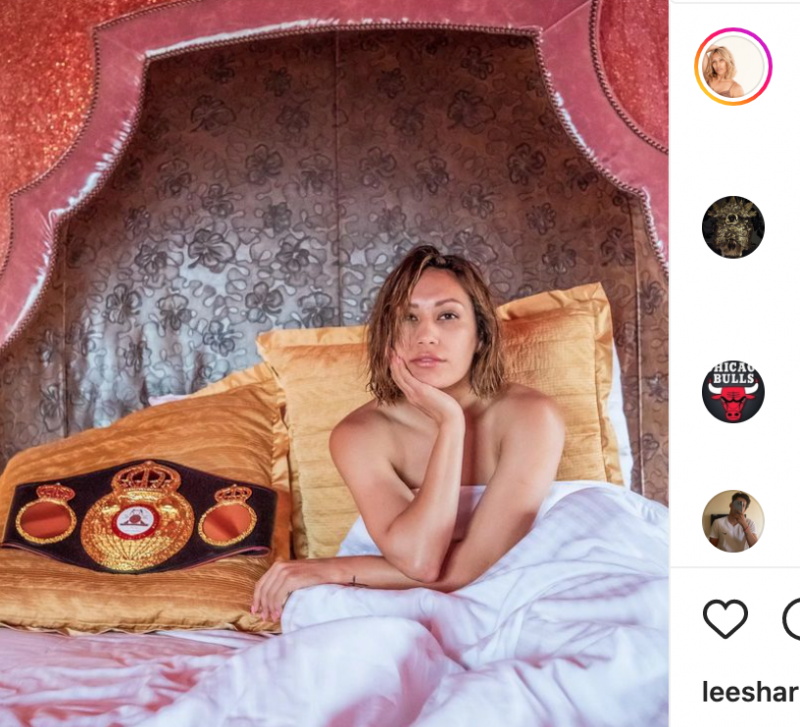 【フォト6枚】4、エストラーダのベッドでのポージング(エストラーダインスタより)